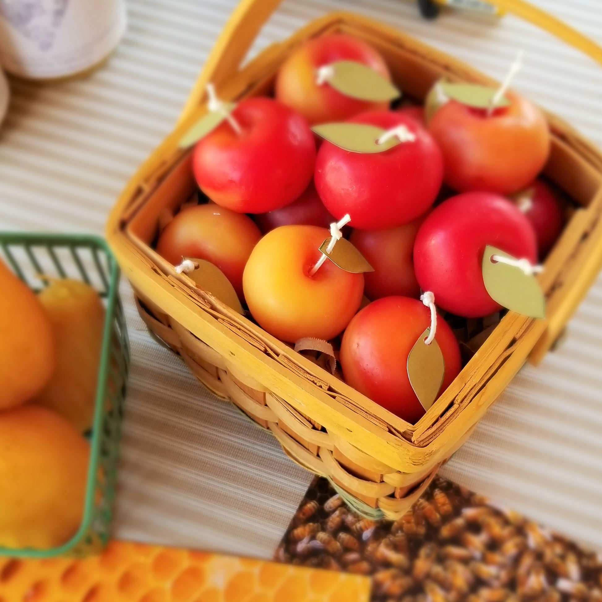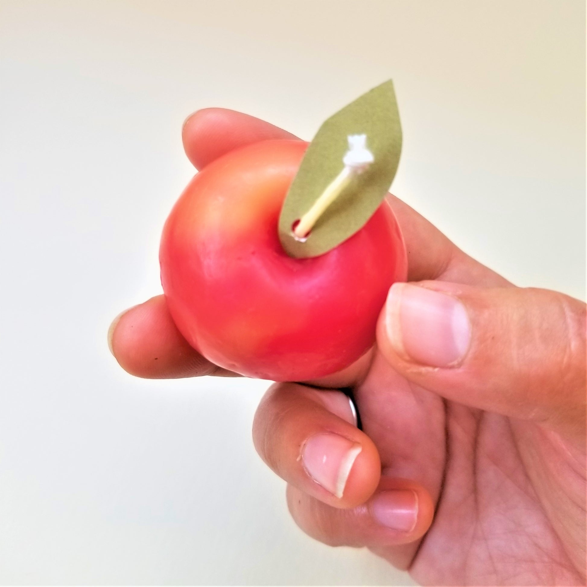 We thought it would be fitting to honor this old apple in candle form so we made a mold using a real lady apple from Silver Creek Nursery, the fruit tree nursery we keep some hives at. It is a small apple, almost crab sized, so it is tiny and cute and still has a 15 hour burn time!!