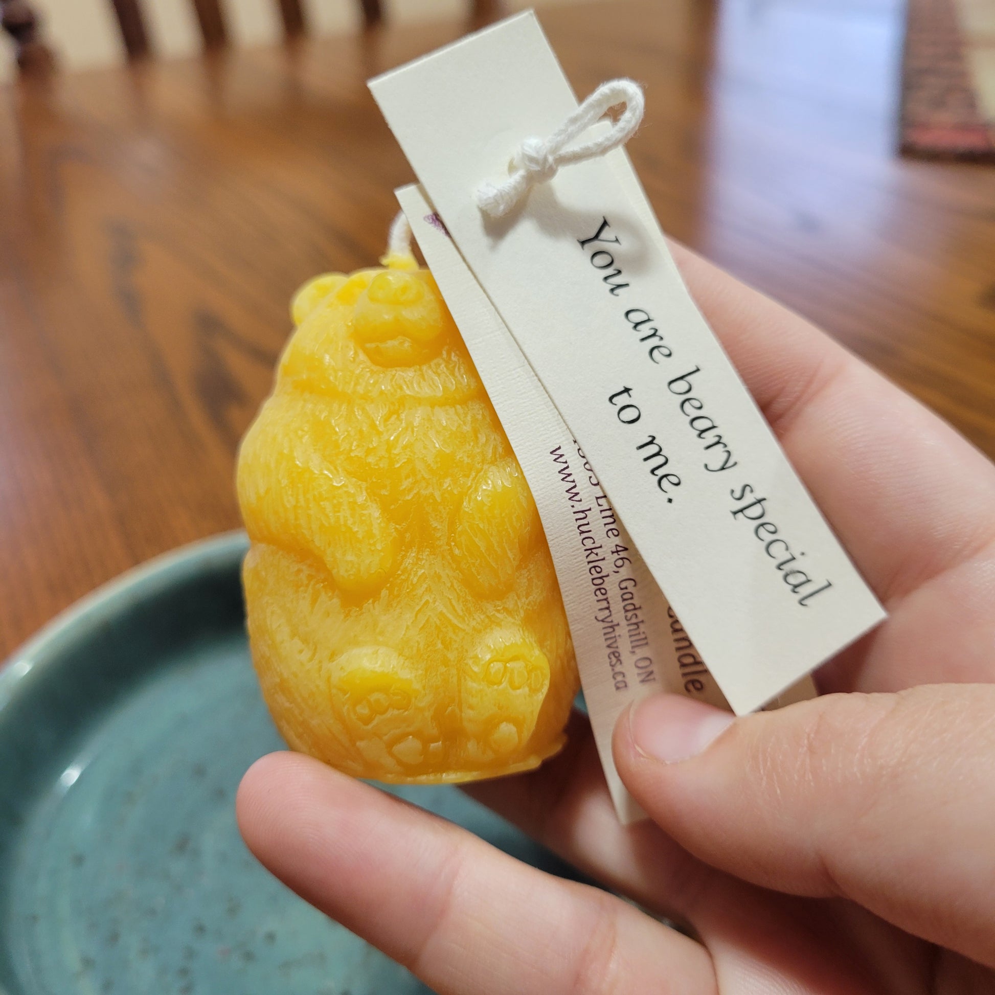 My woodland collection wouldn't be complete without a little bear to eat all the honey - but wait - did you know that in real life, bears actually like to eat the developing bee larvae for its protein, more than they like the honey?! A beekeeper always wants to keep bears away from the bee yard, so a candle version is a much better fit. I hope you'll enjoy the warm glow of your very own bear, or the warm glow of gifting one to someone beary special to you!