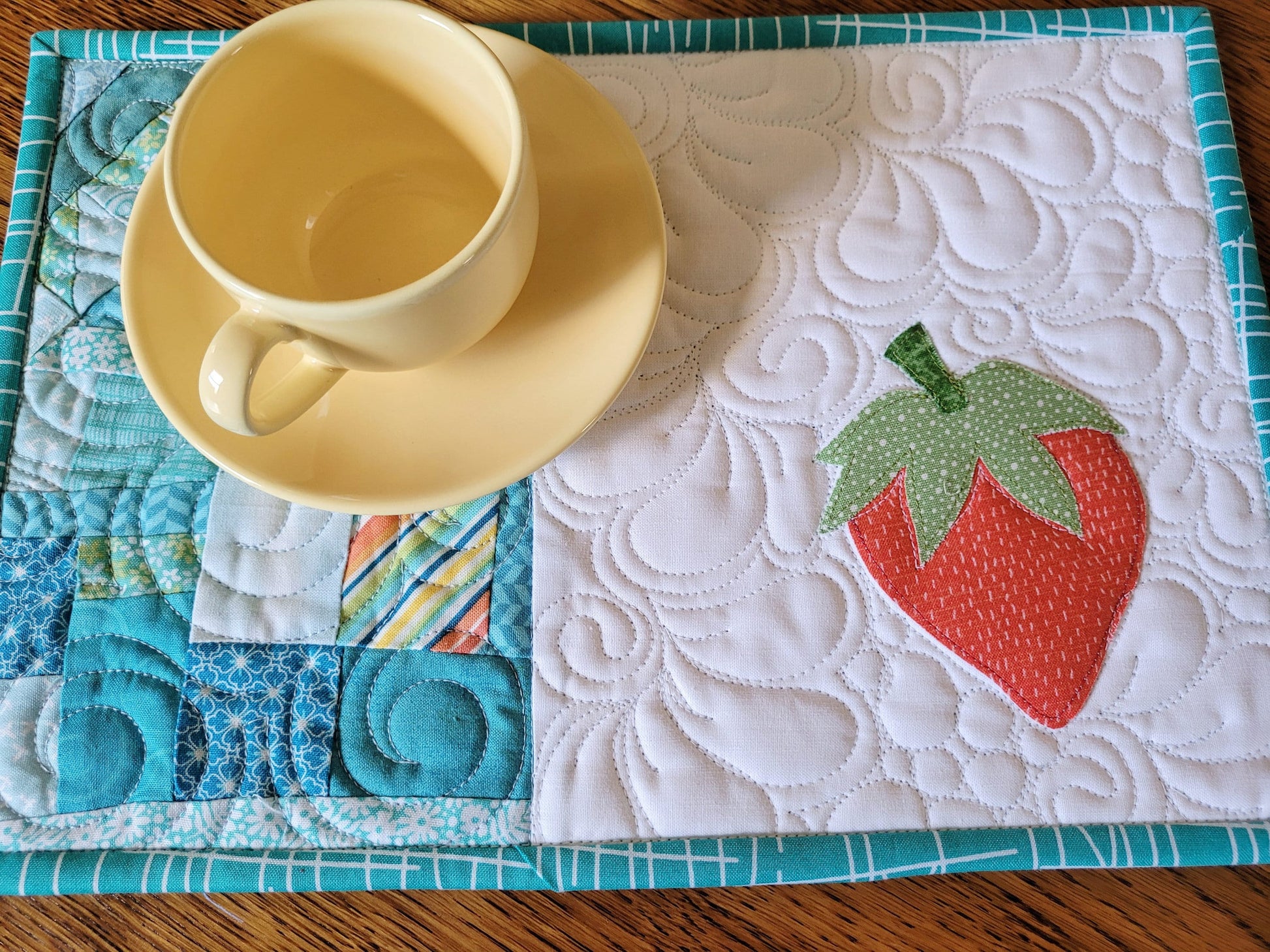 Strawberry Mini Quilt , Mug Rug & Desk Coaster