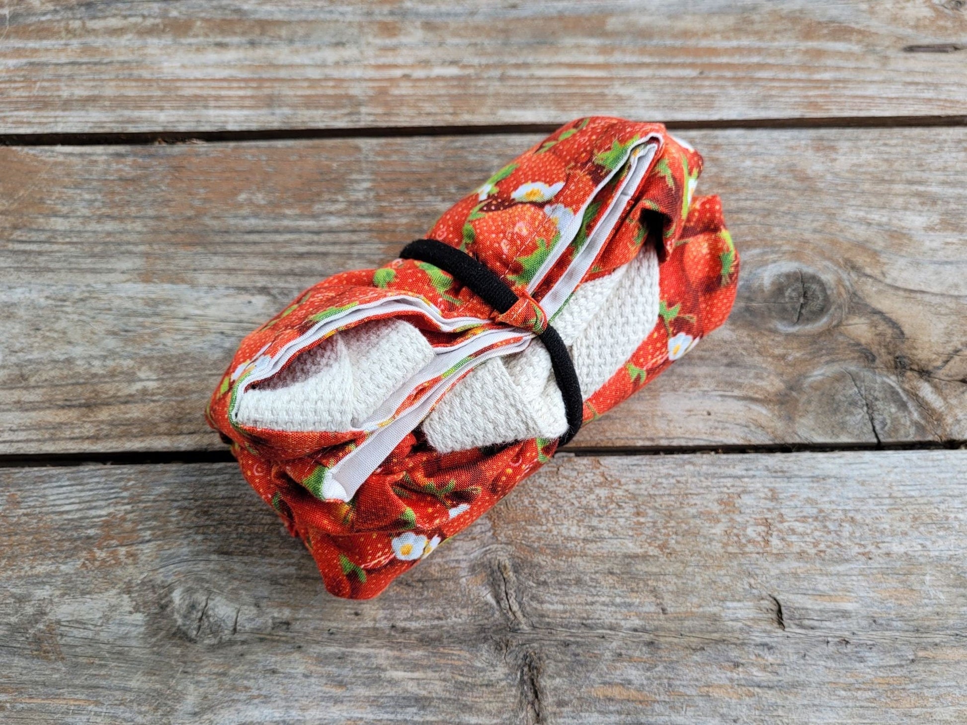 - a nice, thick elastic closure to secure the bag when using our tuck, fold ‘n’ roll method for storing the bag (see video)